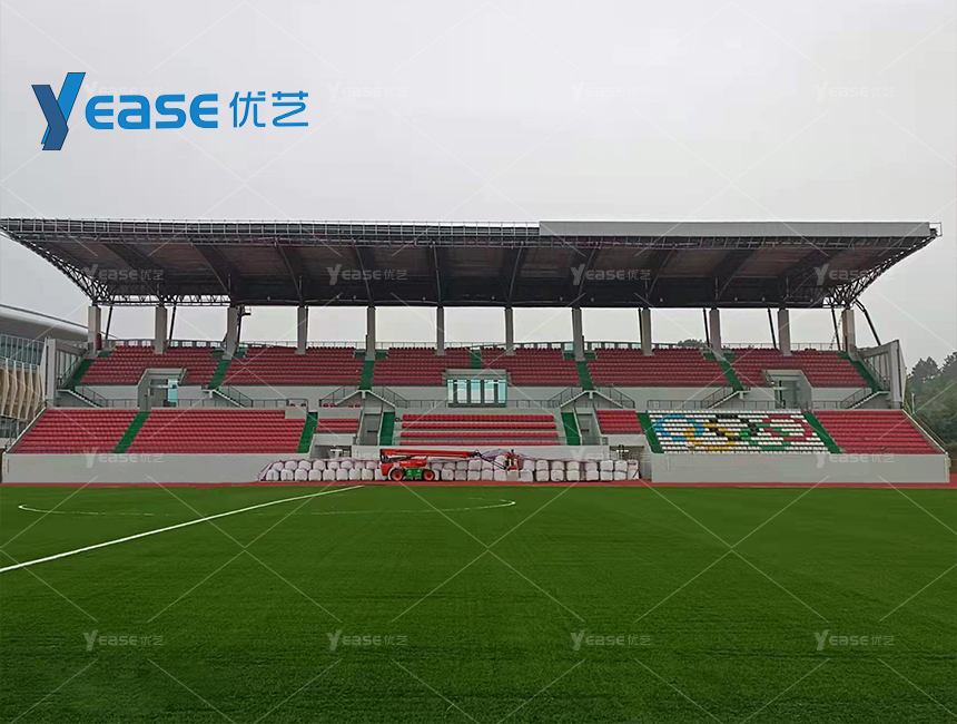 堅固耐用的鋼結構看臺系統(tǒng),滿足戶外場館長期使用與高承載要求。